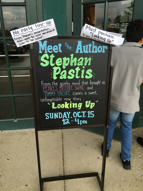 I went to a book signing on Sunday afternoon. The cartoonist, Stephen Pastis, is on a book tour. He spoke for about 25 minutes and answered questions for an equal amount of time. He was hilarious. Pearls Before Swine is one of my favorite current cartoons.