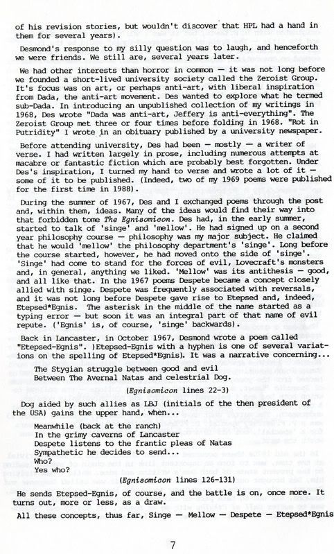 To kickstart any further thoughts (and not wishing to appear presumptuous) and to give some direct on-the-spot reporting from 1989 reviewing the same reporter's earlier self in the year of 1968 (a literal on-the-spot snapshot of which year is shown above) and to answer more easily any basic questions about the then artistic/philosophical ricochet between two earlier selves of two current TLO members (him and me), here's a scan of PFJ's essay called 'Etepsed' that was published in the DAGON DFL Special in 1989: http://i120.photobucket.com/albums/o...s/etepsedc.jpg http://i120.photobucket.com/albums/o...s/etepsedd.jpg http://i120.photobucket.com/albums/o...s/etepsede.jpg http://i120.photobucket.com/albums/o...s/etepsedg.jpg |